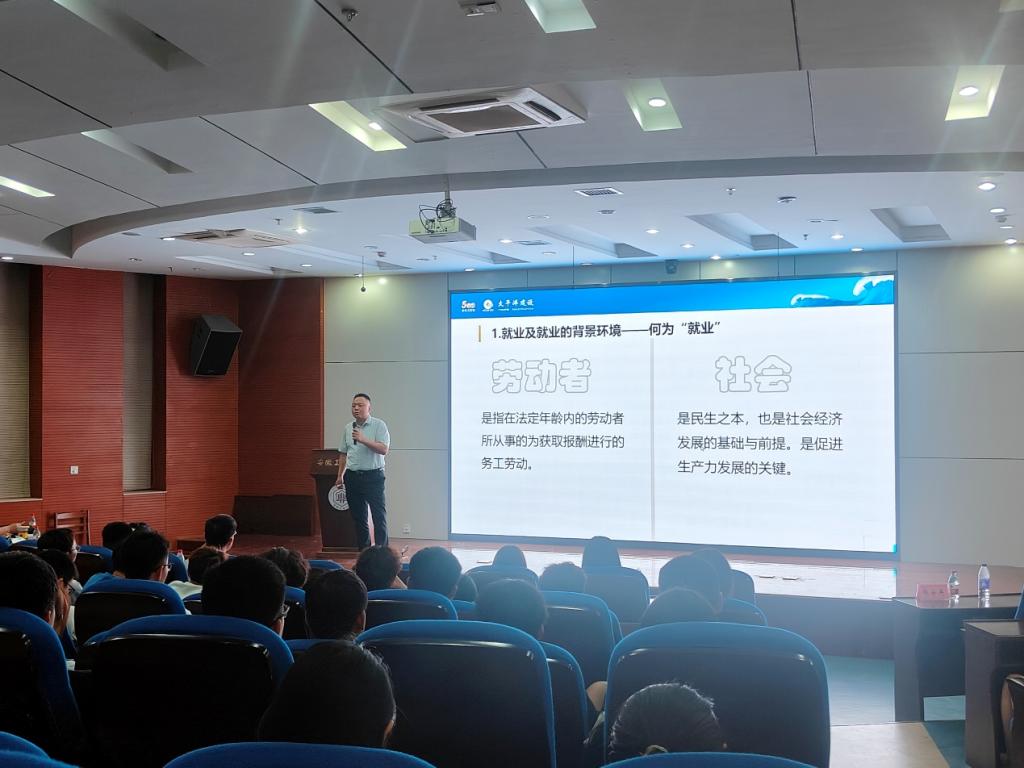 于伟以太平洋建设为切入点,分别从“就业及就业的背景环境”“毕业生的就业视角”“用人单位的用人视角”“太平洋建设的人才培养示例”“入职准备”五个方面展开对基于“成长性”为主题的就业观探讨。从用人单位视角,结合“冰山理论”详细讲解了用人单位对毕业生的各方面综合考量,通过测评等多种方式对毕业生进行“画像”,以便挑选出更符合用人要求的毕业生。他强调,希望大学生能始终记住其立身之能——学习能力,做好职业规划,努力提升技能,以最好的心态领跑职场。