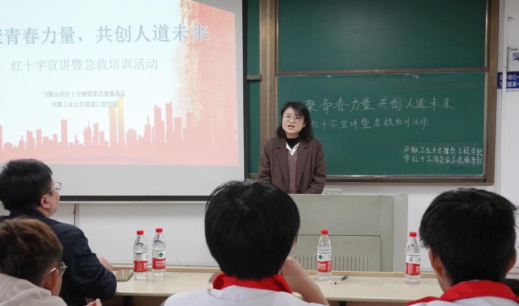 活动伊始,马鞍山市红十字会代表袁超慧详细介绍了红十字精神的核心价值及本次活动的深远意义。她强调,红十字事业是一项神圣而崇高的事业,它关乎每一个生命的尊严与安全,需要全社会的广泛参与和鼎力支持。袁超慧女士鼓励在座的青年大学生积极加入红十字志愿者的行列,共同为壮大红十字队伍、弘扬人道主义精神贡献力量。