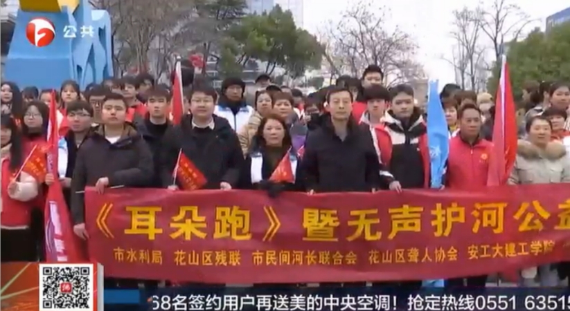 在学校团委和马鞍山市水利局指导下,联合市民间河长联合会、花山区残联、花山区聋人协会、市民间河长花山分会在雨山湖湖畔组织开展“耳朵跑”暨无声护河公益活动。活动事迹被安徽省电视台、安徽省水利厅官方公众号“安徽省河长制”报道。