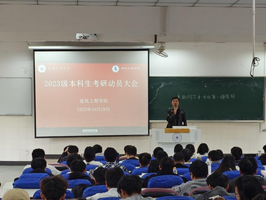 在阶教102组织召开2023级本科生考研动员大会暨考研政策宣讲会,会议由2023级辅导员张腾飞主持,特邀西安建筑科技大学李安邦副教授做考研政策宣讲,2023级本科生参加。