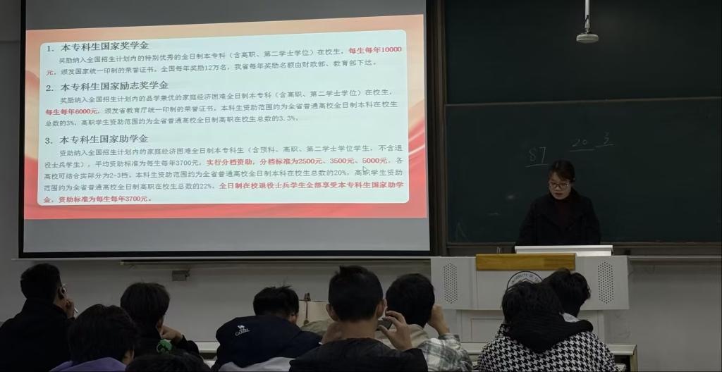在新学期伊始,学院则面向全体在校生,特别是大一新生,集中开展了资助政策普及宣讲。宣讲内容全面覆盖了国家奖学金、国家励志奖学金、国家助学金、国家助学贷款、基层就业学费补偿贷款代偿等多项国家主要资助政策,同时也详细解读了学校设立的各类奖助学金、临时困难补助、勤工助学岗位等校内资助项目的具体申请条件、评审程序、资助标准及发放注意事项。通过清晰明了的流程介绍,确保有需要的学生能够准确、高效地申请相应资助,感受到来自国家和学校的温暖与关怀。