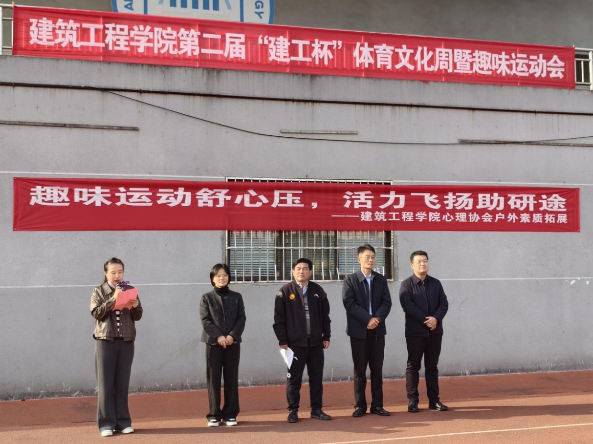 心理工作站依托学院第二届“建工杯”体育文化周暨趣味运动会,在秀山校区田径场同步启动“趣享心灵运动工坊”系列活动。开幕式由建工学院党委副书记、副院长王颖之主持,建工学院党委书记张虎、学生工作部(处)副部长王萌、研究生院(研究生工作部)副院(部)长王敏、校体育部副主任李克明出席。