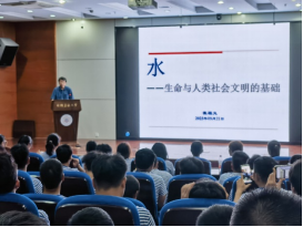 随后,崔福义教授在秀山校振华区图书馆一楼报告厅作了题为《水——生命与人类社会文明的基础》的学术报告。崔福义围绕“水”主题,就水的含义、水循环、水科学与工程等内容展开,就专业重要性、学科热点问题、行业人才需求以及专业发展趋势、专业学习等问题进行了系统阐述。崔福义指出,给排水专业前景广阔,鼓励学生踔厉奋发、勇毅前行,必定大有可为。给排水科学与工程专业教师、2023级新生、部分高年级本科生与研究生及感兴趣的教师参加了报告会。整个报告专业氛围浓厚,学生积极参与,互动交流热烈。 (撰稿:沈翼军;审核:张虎)