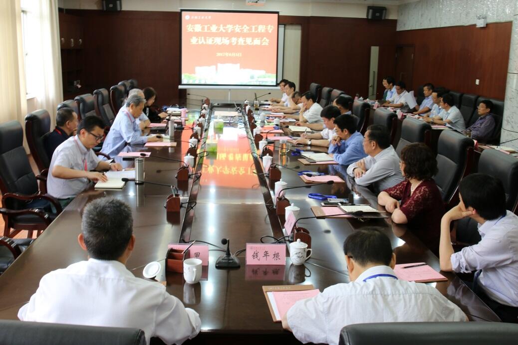 全体领导班子、部分教师参加了见面会。会后专家组全体成员在校长李家新、副校长葛芦生的陪同下,先后考查了学校工程实践与创新教育中心、振华图书馆、物理实验室、电工实验室、力学实验室和建工学院的工程热力学、流体力学、工业通风、建筑消防、防火防爆、安全人机工程、安全检测技术、职业安全与卫生等实验室,并查看了建工学院图书资料室和荣誉室。