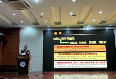 牛荻涛教授作题为“混凝土结构耐久性研究进展”的学术报告。报告首先回顾混凝土结构耐久性研究的发展历程,指出其从单一因素研究逐渐向多因素耦合作用研究的转变。接着阐述在荷载与环境共同作用下,混凝土抗渗性、抗冻融循环等方面的研究成果,以及耐久性评定标准的建立和预测模型的发展。此外,探讨极端气候条件下耐久性研究的新方向,为混凝土结构耐久性研究提供全面而深入的视角。