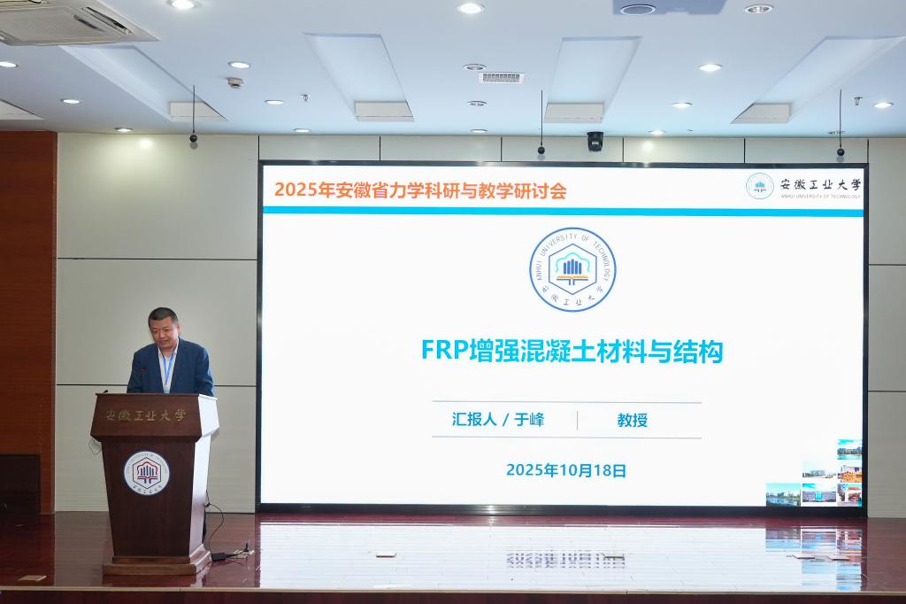 院长于峰教授、安徽省交通规划设计研究总院股份有限公司总工程师吴志刚、安徽理工大学蔡海兵教授、合肥工业大学孟增教授、安徽建筑大学徐沛保副教授分别作了《激波管设备研制与应用》《FRP 增强混凝土材料和结构》《马鞍山长江公路大桥全寿命周期建造关键技术创新与应用》《地铁隧道冻结法施工地层三维冻胀变形机制研究》《基于物理数据驱动的可靠性拓扑优化方法研究》《液晶弹性体人工肌肉及其自主结构设计》的报告。分会场研讨围绕“计算力学及应用”“固体力学及应用”“力学教学与人才培养”3个主题展开。