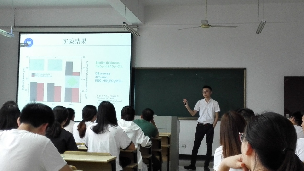 师生作了题为“正渗透在污水资源化中的应用及膜污染防治”的精彩学术报告。给排水科学与工程专业高年级本科生和市政工程研究生参加了报告会,市政工程系教工党支部书记汪明明主持了报告会。